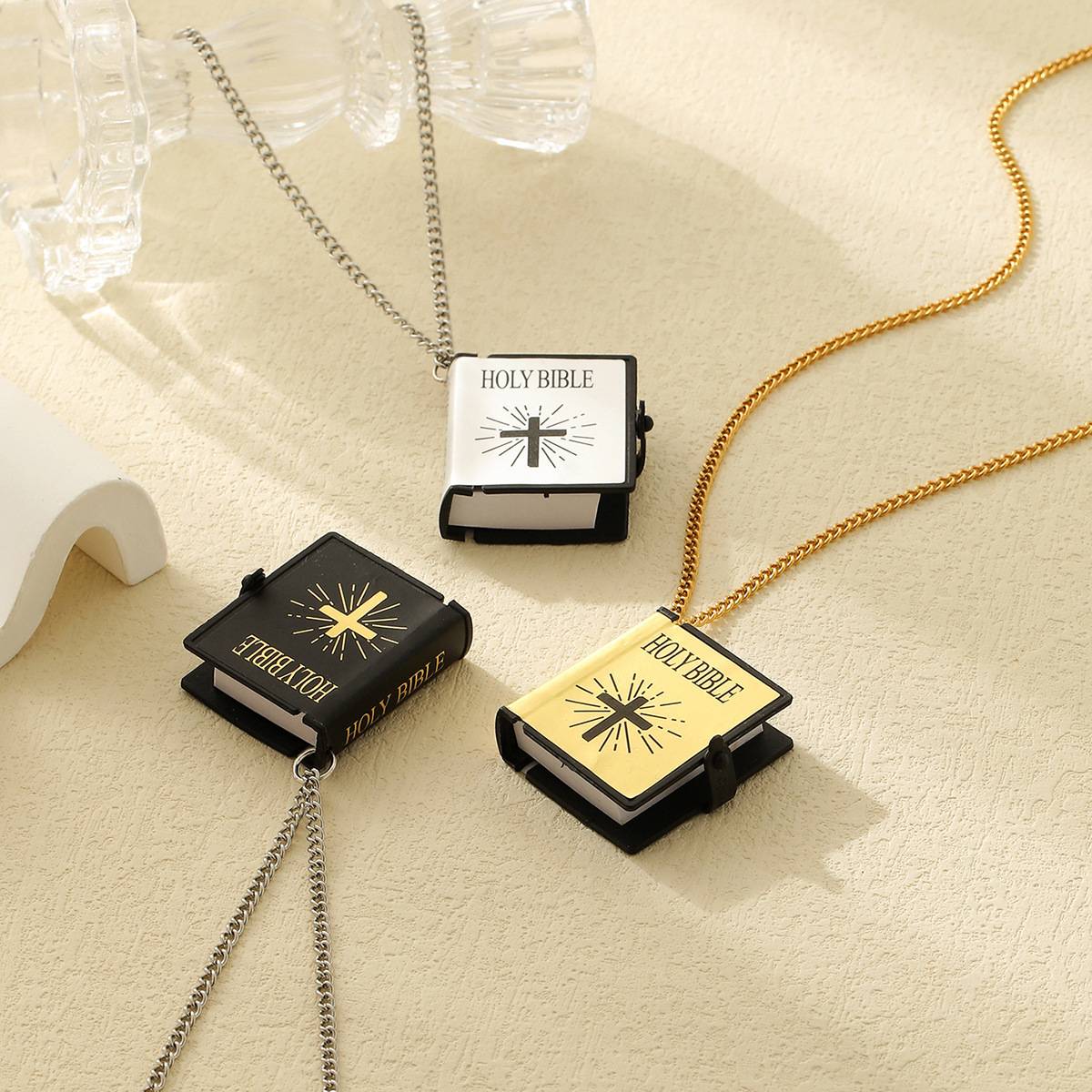 Color: gold necklace cross Bible pendant necklace one piece, silver necklace cross White Bible pendant necklace one piece, silver necklace cross black Bible pendant necklace one piece